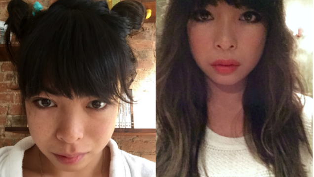 It's 8:30 a.m. now: I cover my body in a shit ton of Alba Hawaiian Kukui Nut Body Oil (easily the best thing at the drugstore after cheap waterproof eyeliner) and put on a bathrobe. I blow-dry my bangs, then the roots of the rest of my hair and put it into two buns to keep drying. In that picture up top, you can see the scar on the right side of my cheek, which I used to hate—I had shingles in seventh grade, and was self-conscious of the scar for middle school reasons but forget I have it now and don't even put concealer on it. You can also kind of see the freckles that I have on my nose and cheeks, which are so faint that they disappear as soon as I put on even a little bit of makeup.